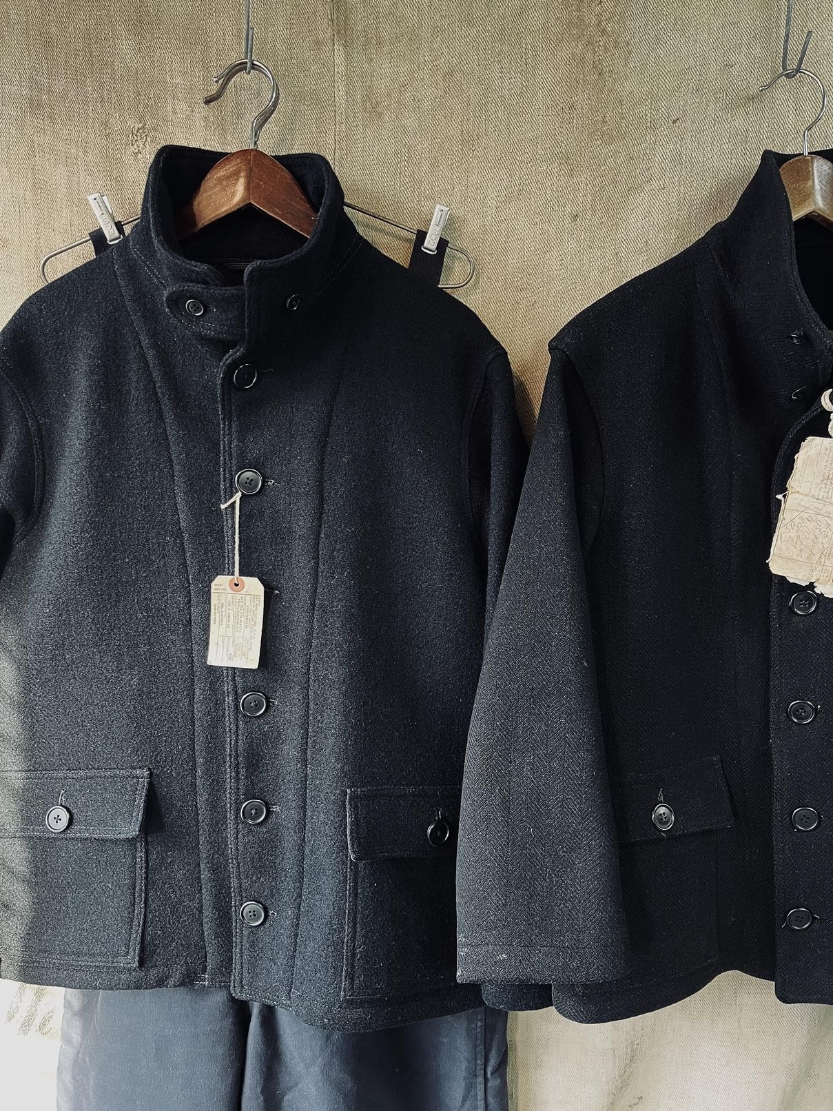画像(右)は実物サンプルと4年間ほど着用した弊店のSubmarine jacket サンプル(左)です。