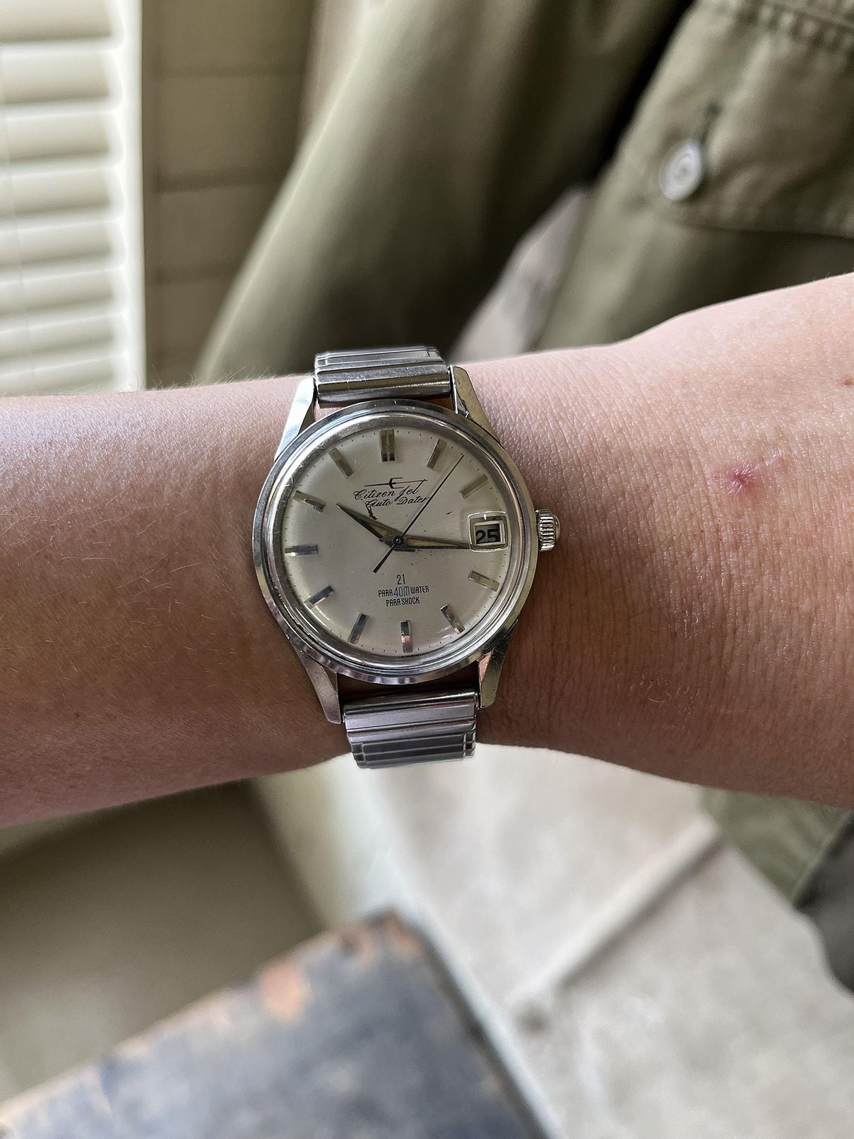 This bracelet is a 1960s Japanese-made extension stainless steel bracelet. It has excellent elasticity and matches the watch well with its era.