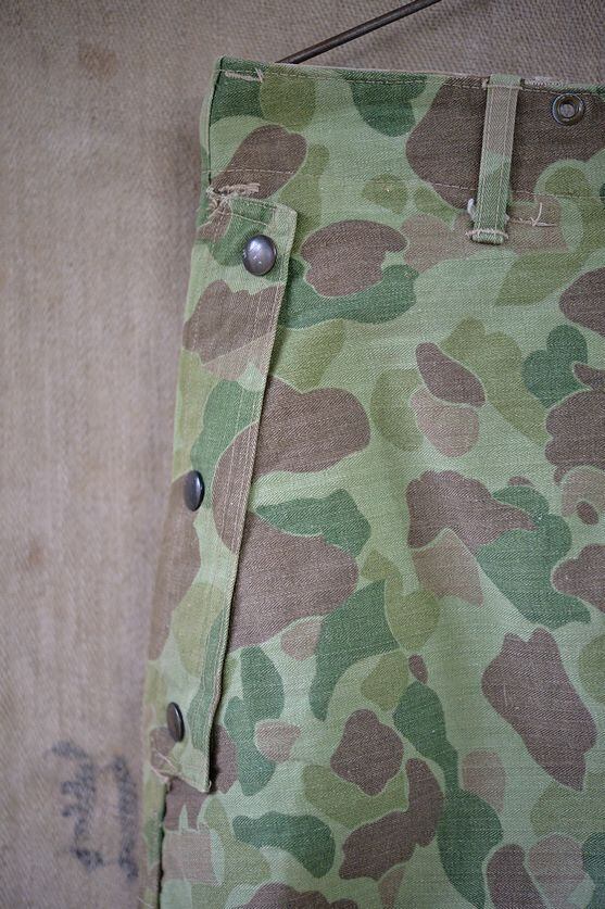 マテリアルはへリンボンツイル、陸軍のカモフラージュに比べるとグリーンカラーの強い印象です。大型のリアポケットはマップなどを携行されると言われますが、実際のところそれほど便利な機能とは言えなかったかもしれません。