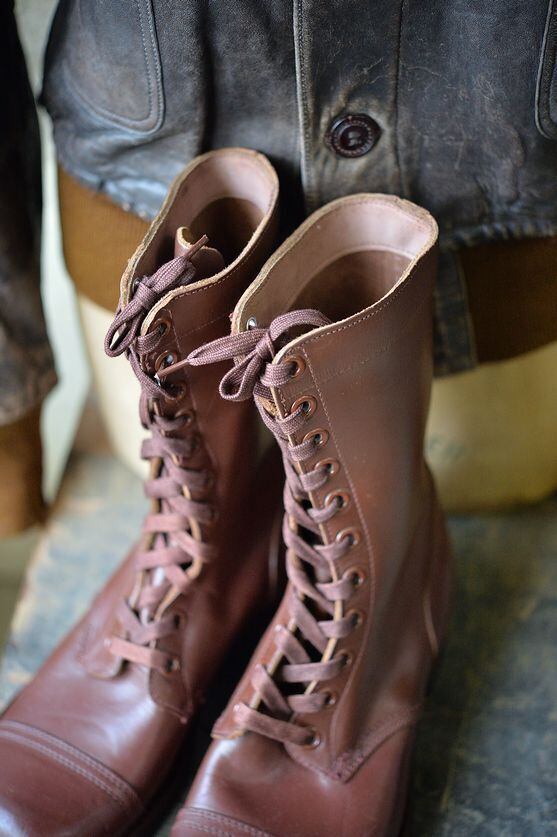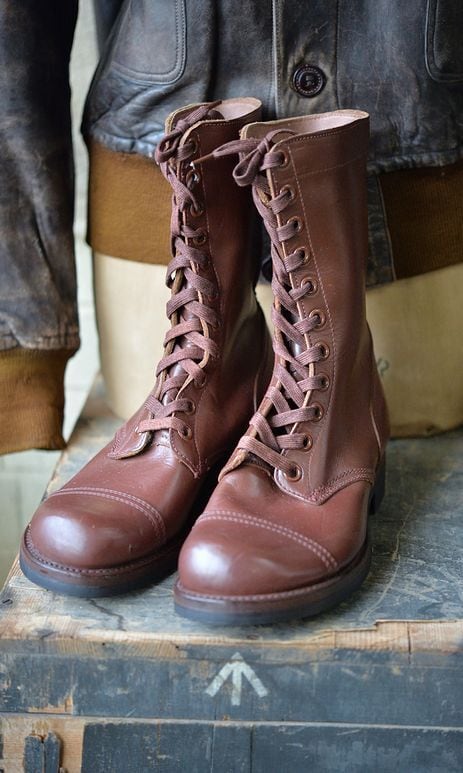 A pair of US Army airborne jump boots, known as the 1948 model.