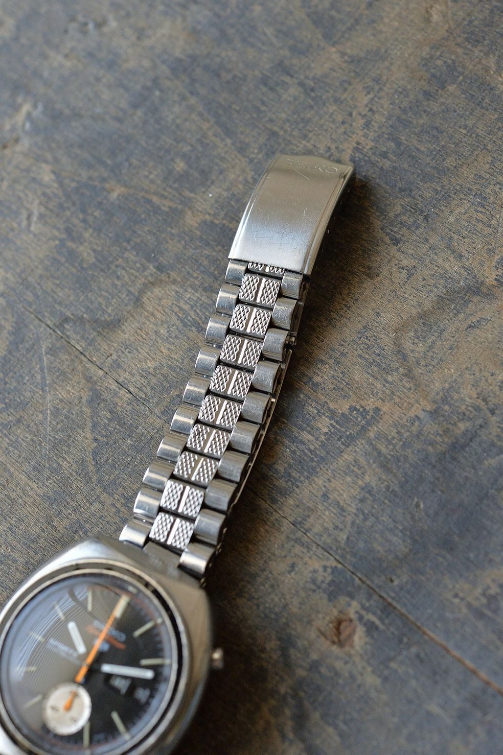 The bracelet is a vintage Seiko, and although not exclusive to this model, it matches it very well.