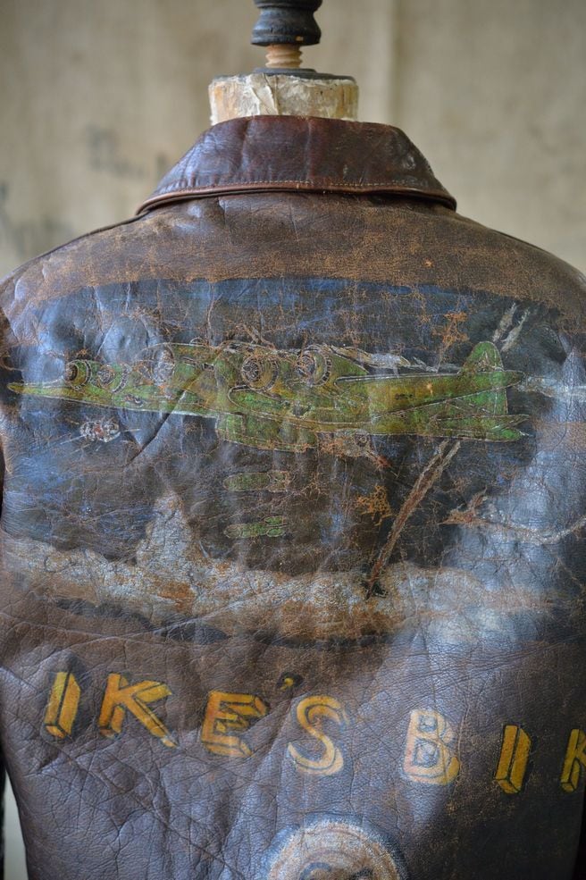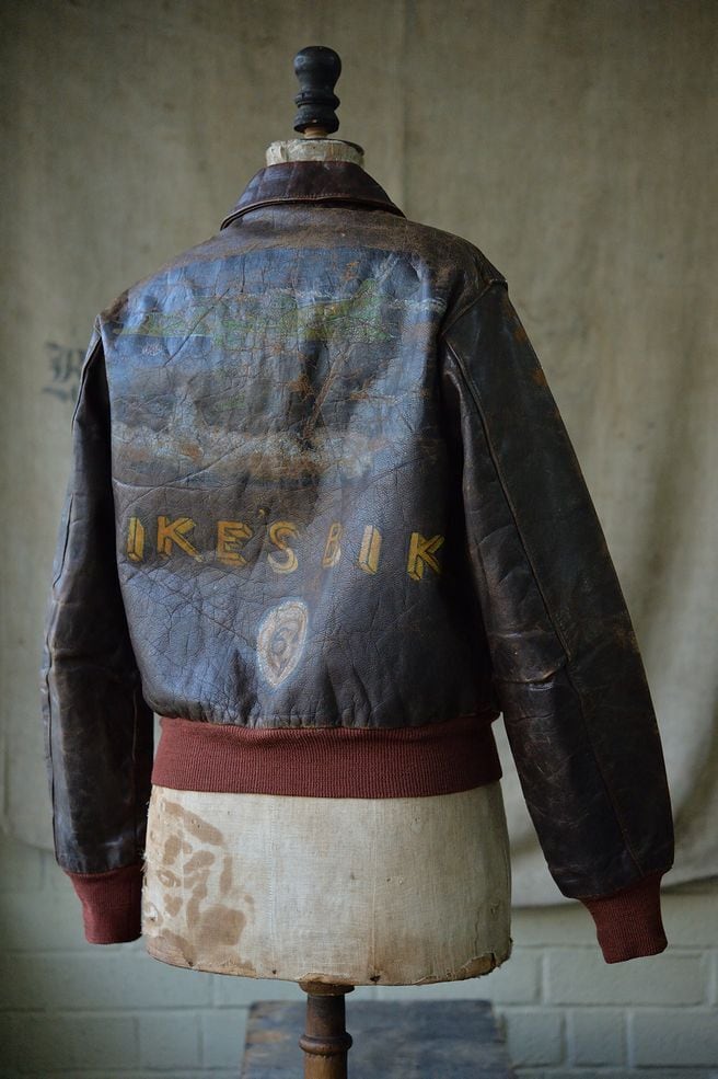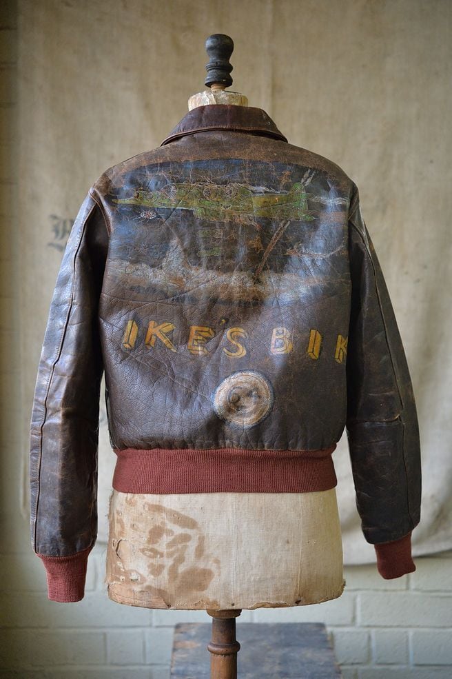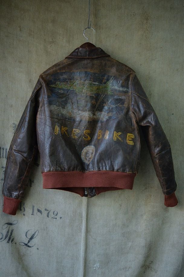 The front features a patch, and the back features B-17 and IKES BIKE paint. While details about the unit are unknown, the paint is impressive and the cotton thread used to sew the patch is in good condition.