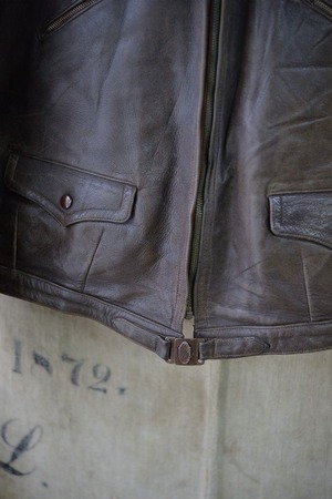 このように軽量レザージャケットは、カナール/チャネルジャケット等のドイツやブルガリアで生産された防寒用のレザー製飛行服とは違い、当時のフランス等の占領地のモーターサイクルジャケットを転用した物が多く見られます。