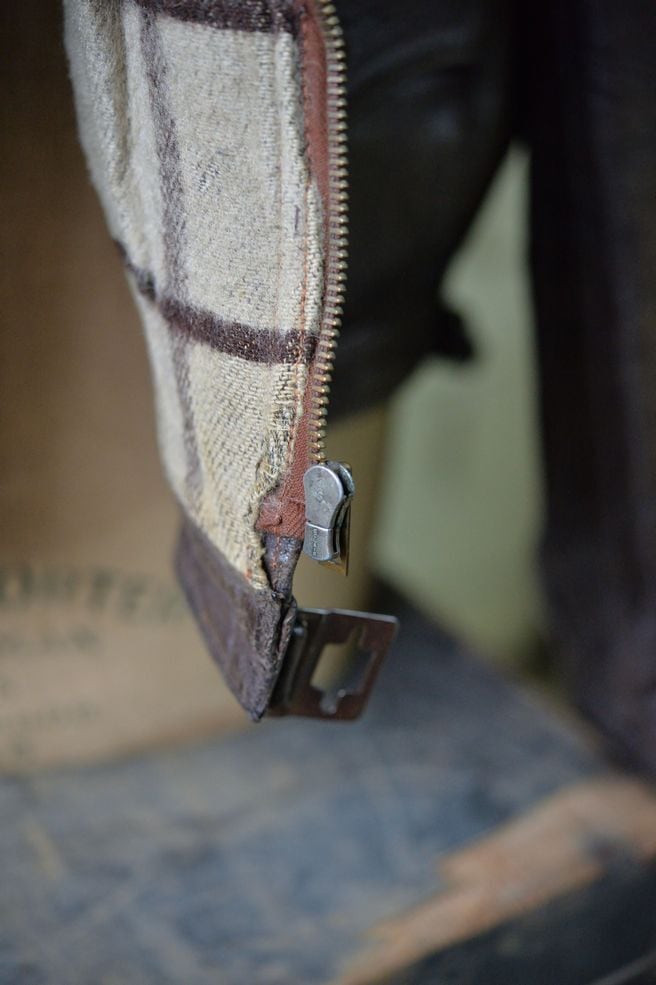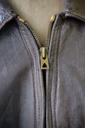 The leather is in very good condition. The lining is wool. The inner sleeve fabric is rayon. The main zipper is made by ECLAIR. The zipper works without any problems. The zippers on the pockets are also in their original condition. The front zipper has been repaired.