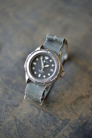 クオーツムーブメントを使用したツールウォッチ。目を引く激しくエイジングしたベゼルが魅力的です。