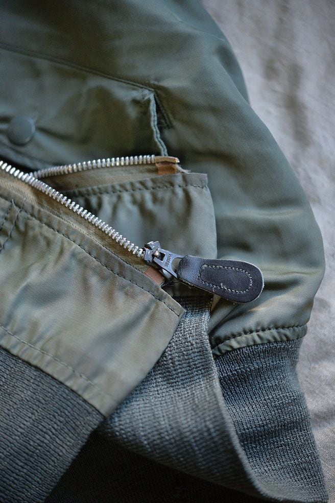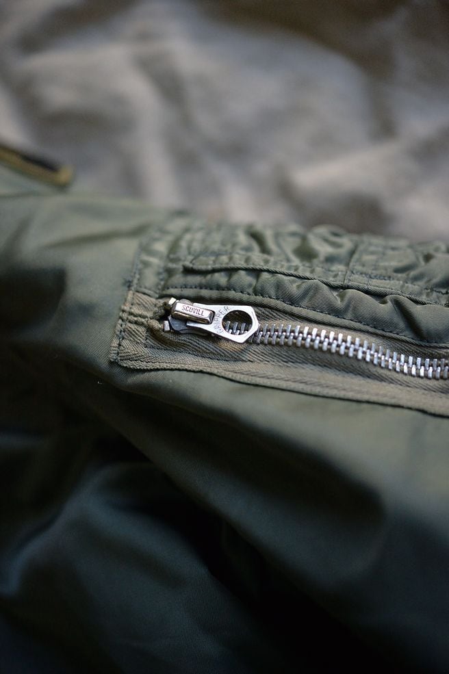 ジッパーはすべてオリジナル。スライダーがブラックフィニッシュされたジッパー。袖のポケットのジッパーはSCOVILL製
