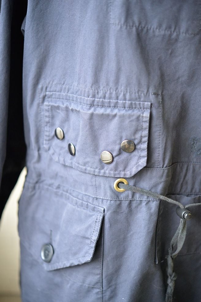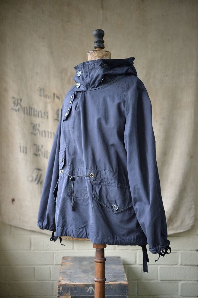 Size 1. This is a rare, small-sized smock that is becoming increasingly difficult to find. The dark, almost black-blue Ventile shell is a heavy-duty, windproof design, and the water-resistant Ventile material is used.