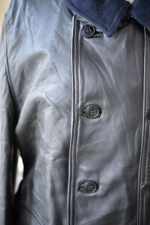同形状のレザーワークジャケットは、1930年代後半から1980年代まで製造されていたと思われます。今回バイイングしたジャケットは襟にウールを貼ったタイプです。