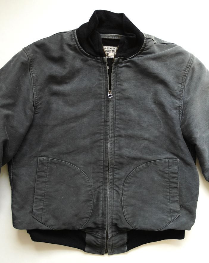1941年 オリジナルU.S. NAVY Special winter clothing システムのジャケット ジッパー使用のモデル、いわゆるジップデッキジャケットです。コントラクトナンバーは87533となり、このナンバーの物は背面にU.S. NAVYマーキングは入りません。各パーツがフルオリジナルでサイズは40 内部ウールに若干縮みがあって実寸は38程度になっています。ジッパー最上部から4cm付近まで何箇所かテープ、歯の切れがありますが、80%ジッパーを閉めることは可能です。弊店でオリジナルジッパーへ交換可能ですが、現状のままの方が価値を維持できると思います。若干色落ちがありますが素晴らしい風合いのある個体です。