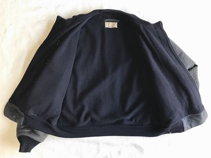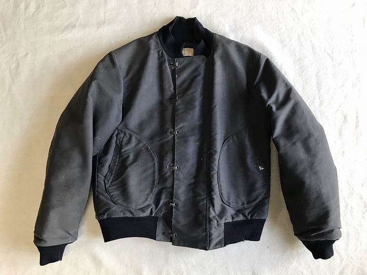 サイズは38です。 ジャケット全体と通してのコンディションは比較的綺麗ですが、あくまでユーズドコンディションであり、各部に汚れ、ペンキの付着、ニットには小穴やスレがございます。金属製の金具は錆が発生しているところもあります。ライニングは比較的綺麗です。ラベルは残っており文字も判別できる状態です。