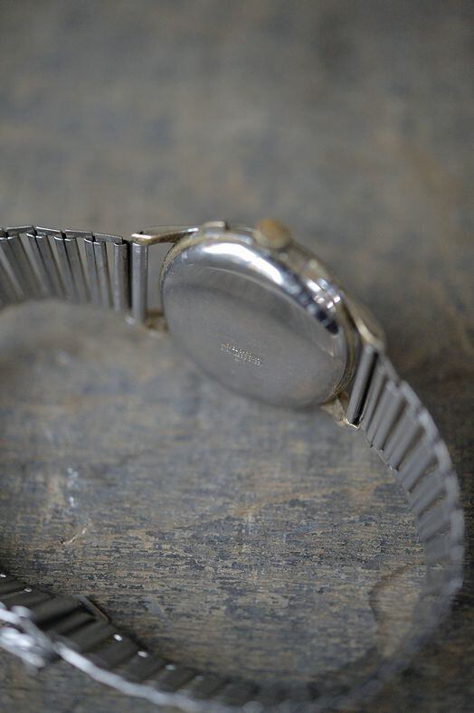 The crown is also easy to operate, and the pushers are square this watch has an attractive dark black mirror dial Paired with military-style vintage bamboo bracelets.
