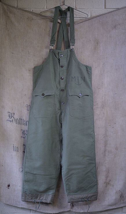 Winter jacket trousers for the French navy, thought to have been developed and produced with design and technology transfer from the U.S. Navy N-1 system since the 1940s. It follows the shape of the U.S. Navy N-1 deck jacket trousers.