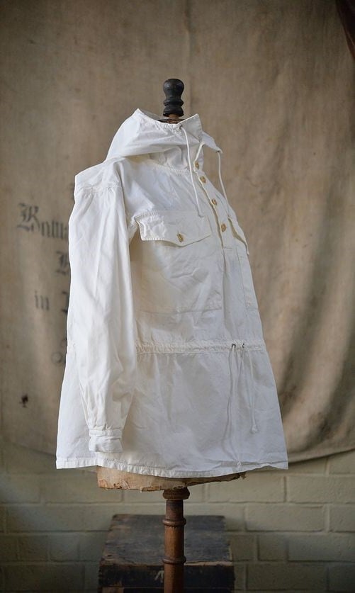 There are drawcords at the hood and waist, and ventilation eyelets under the armpits.