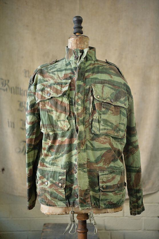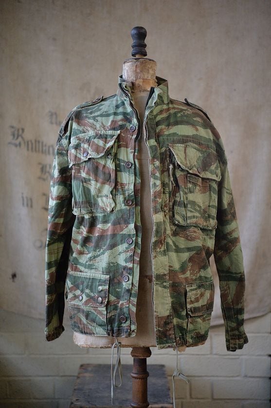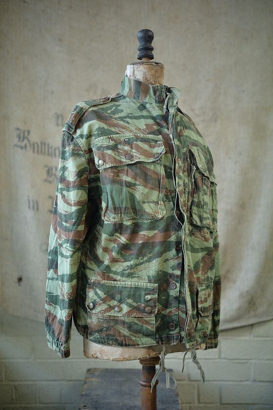A field jacket made of lizard camouflage fabric used by the French Army from around the Indochina War.
