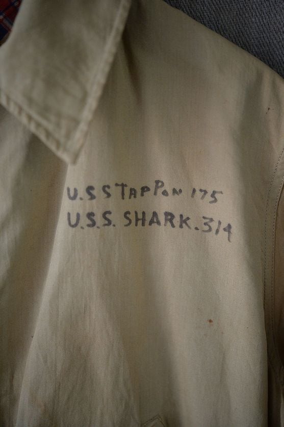 フロントにはSS-314 SHARK型潜水艦とSS-175 TARPON型潜水艦の記載があり(TAPPONと記入)、背中にはニックネームなどがサインされています。