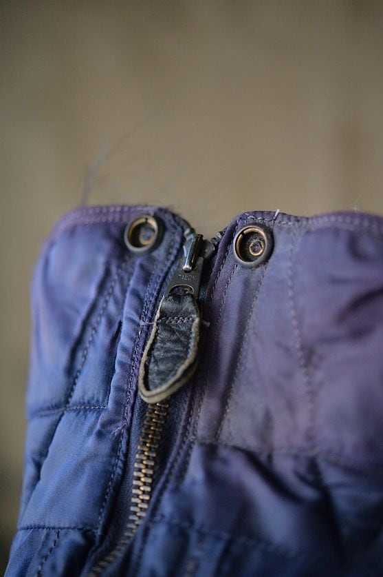 The main zipper is a TALON brass zipper, and the hood zipper is made of black-painted TALON. The zipper for the sleeve pocket is the same type.