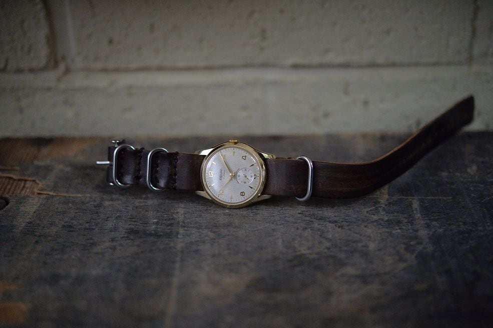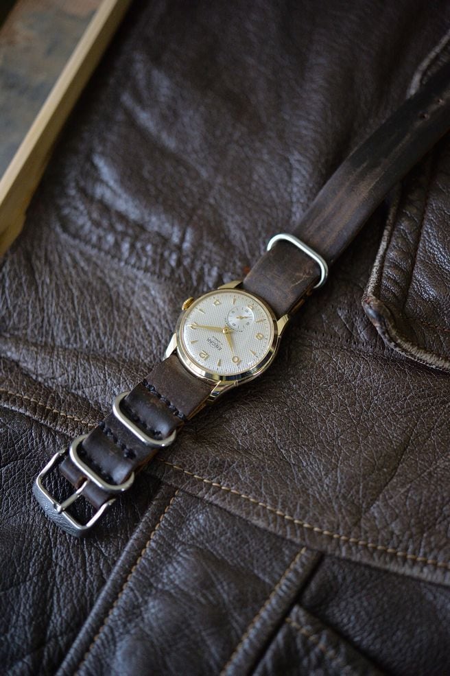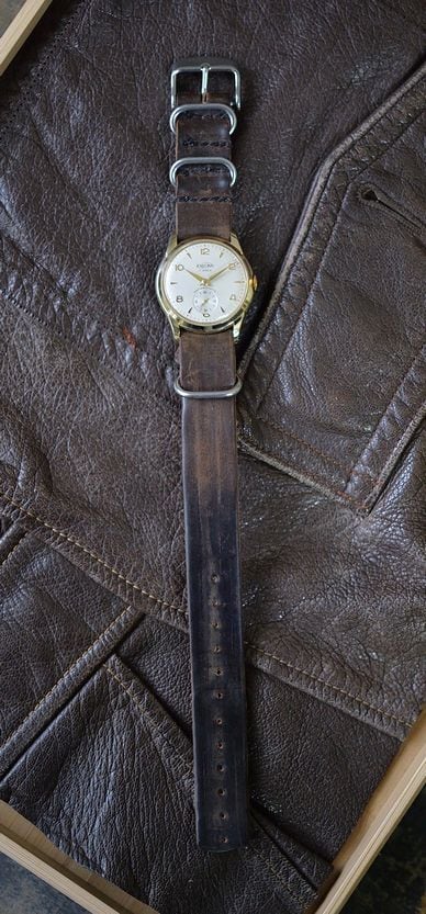 The strap is a genuine Horween Shell Cordovan NATO strap 18mm.