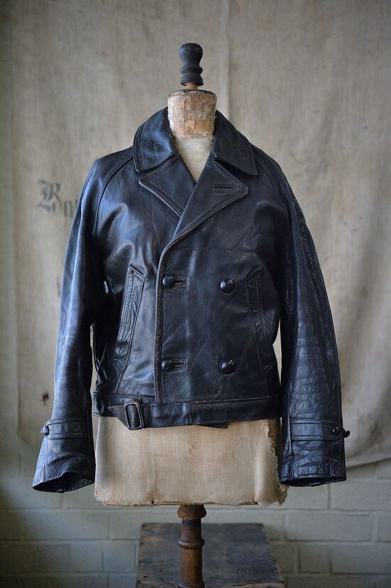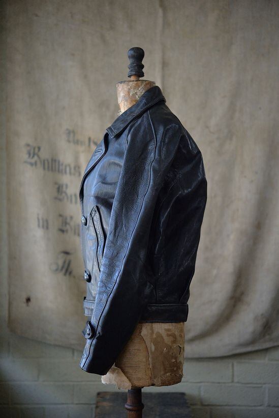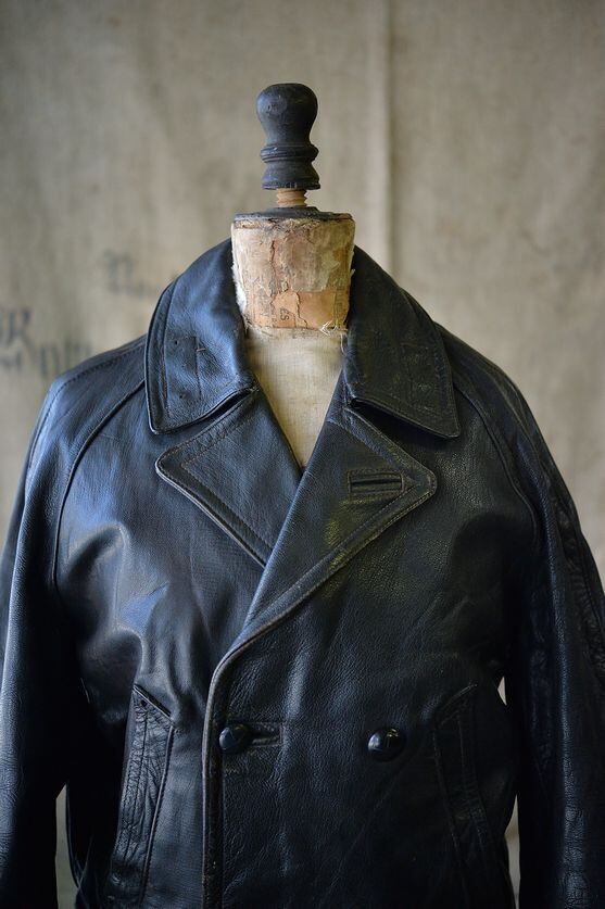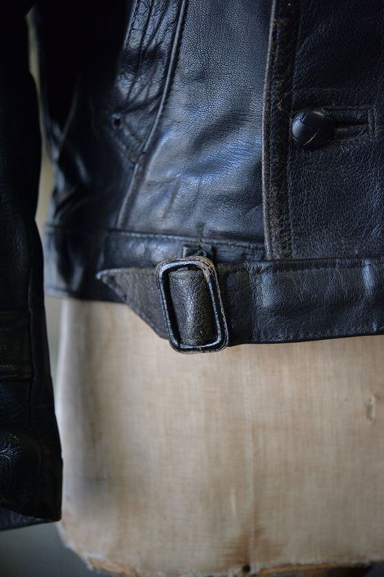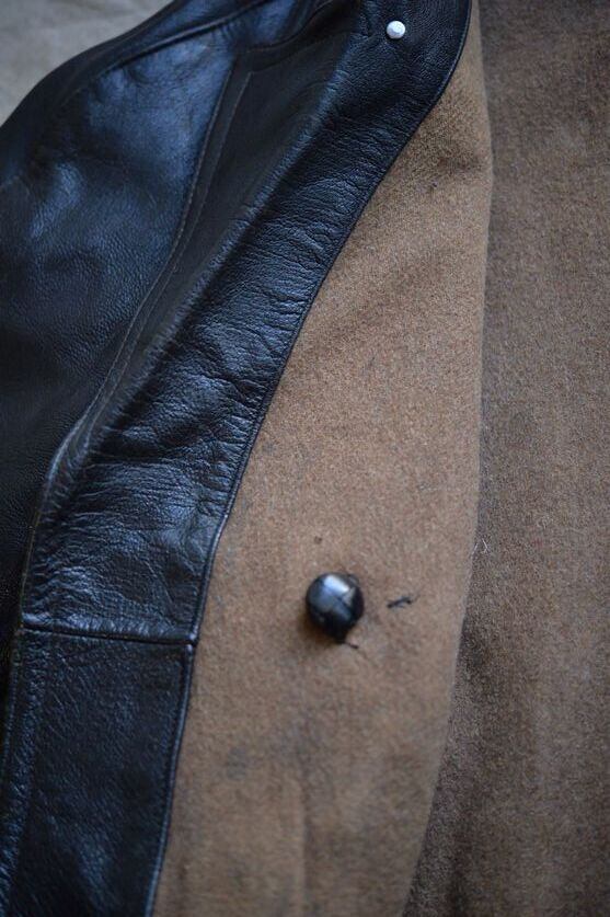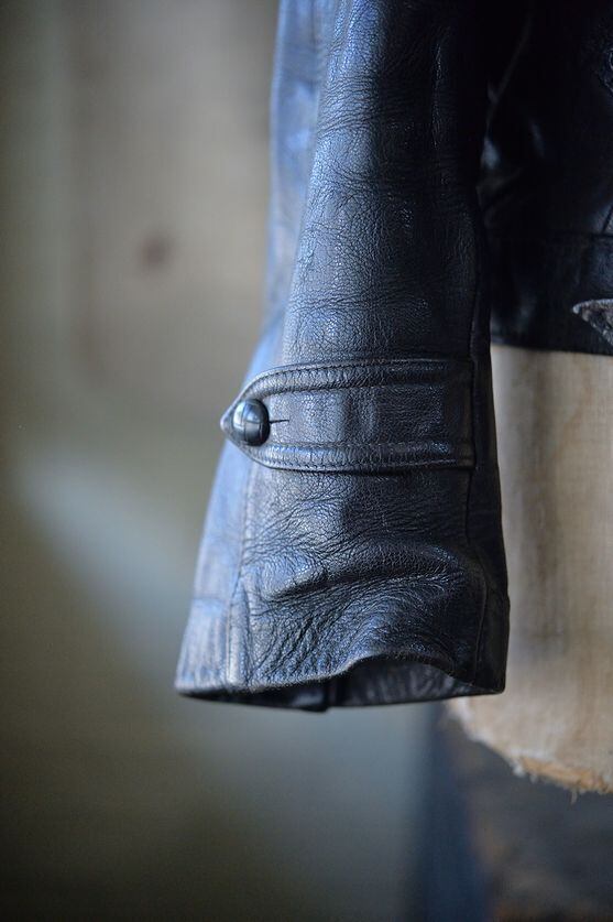 裾の内部のレザーの折り返し部分を見ると、おそらくロングコートをショートに改造されたものと思われます。