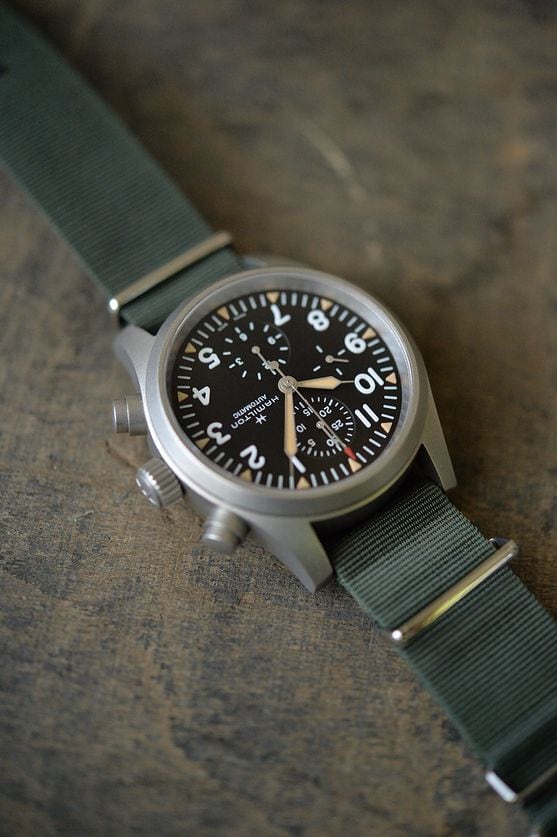 A pilot chronograph based on Hamilton's traditional khaki field watch.