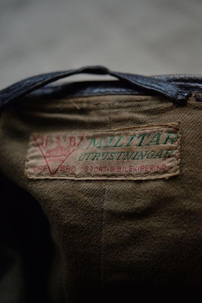 このスタイルのワークレザージャケットは1930年代の末期(推定ですが)から同じような形状でレザーを変更して、1970年代ごろまで製造されていたと思われます。かなり多くのメーカーで製造されており有名なところではSejson Malung社、ANBRO MALUNG社製などがあります。これら多くの製品のラベル表示をみると、生産はスウェーデンであることが分かります。一部はスウェーデン陸軍において、使用されていたと思われる個体も以前に入荷しました。この軍用に使用されたと思われる個体には、ポケット内部にスウェーデン軍のマークが刻印されていたり、軍用を意味するメーカーラベルが付いていたりしました。