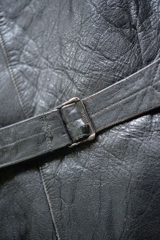 レザーのコンディションは良好です。柔らかく着心地の良いレザー。フロントはダブル、袖にボタン、バックにサイズアジャスターベルトがボタンで調節できるようになっています。バックには特徴的な金属金具を用いたサイズアジャスターがあります。差し込み方式でサイズを調節するためのパーツです。