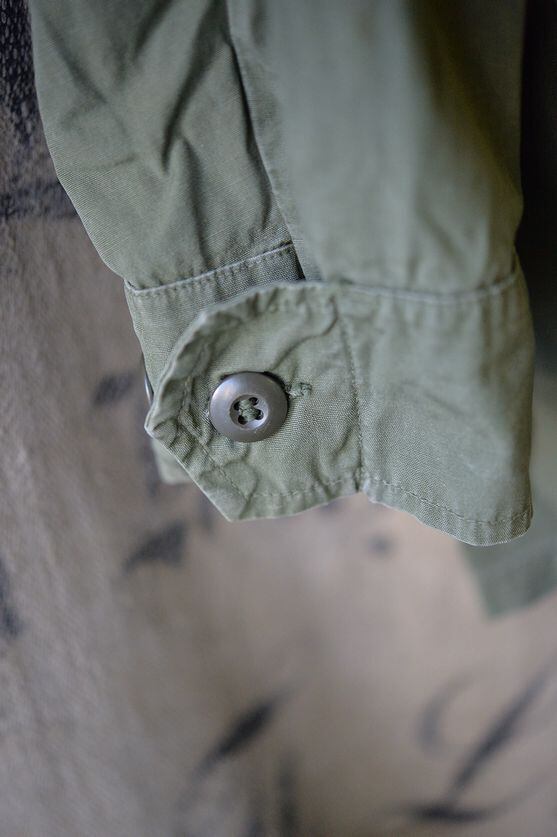 これらローカルメイドパッチの取り付けられたファティーグは入手が困難になっています。ボタンのないラウンドボタン。ラベルも付属しています。