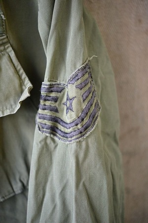 ローカルメイドパッチの取り付けられたパティーナのあるオリジナルファティーグ。